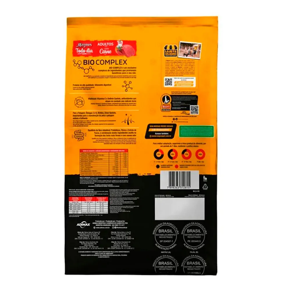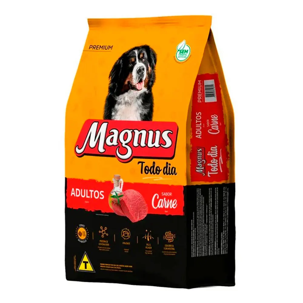 A Ração Seca Magnus Every Day Carne para Cães Adultos contém ingredientes que fornecem um alimento com todos os nutrientes essenciais e importantes para a qualidade de vida do seu cão. Formulada com precisão para atender às exigências de pets adultos, acima de 12 meses, de qualquer raça, em fase de manutenção.
