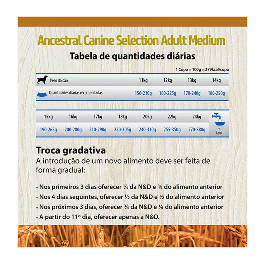 A Ração Farmina N&D Ancestral Grain Selection Carnes e Frutas para Cães Adultos Raças Médias é um alimento de origem Italiana, com baixo índice glicêmico, possui apenas cereais ancestrais em pequena quantidade, que resulta em um produto com nível de amido reduzido, por isso promove menor oscilação da resposta glicêmica. Uma ração cientificamente elaborada para respeitar a natureza e o metabolismo de seu pet.