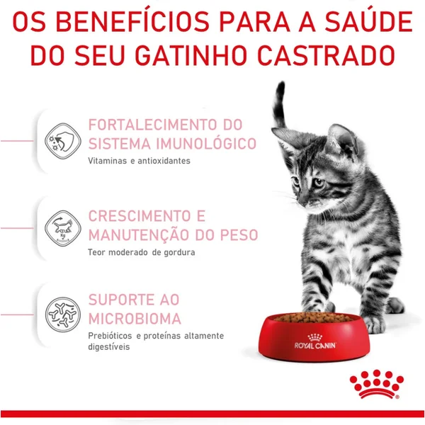 Alimento seco completo para gatos filhotes castrados – De 6 a 12 meses de idade.